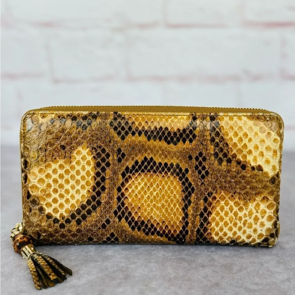 Authentic Gucci Python Embossed Tassel Zippy Wallet