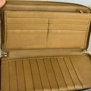 Very good condition. Does show wear to exterior edges. Interior shows an ink mark and general wear. Gorgeous python embossed wallet.