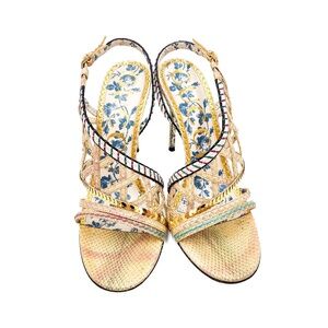 Gucci Python Ivory Strappy Gold Sequin High Heels Shoes EU 37.5