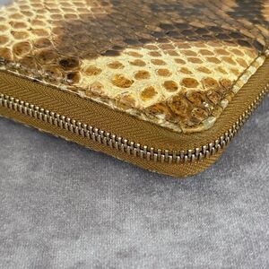 Very good condition. Does show wear to exterior edges. Interior shows an ink mark and general wear. Gorgeous python embossed wallet.