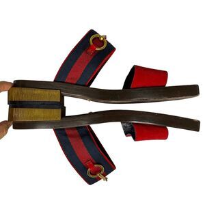 Gucci Querelle Red Suede Web Stripe Slide Heeled Wooden Sandals Women Size 36.5