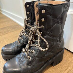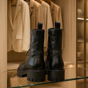 Gucci Quilted-Logo Leather Combat Boots