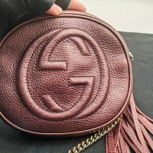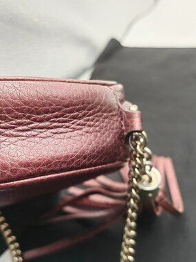 Gucci #R Metallic Burgundy Leather Mini Soho Disco Chain Crossbody Bag
