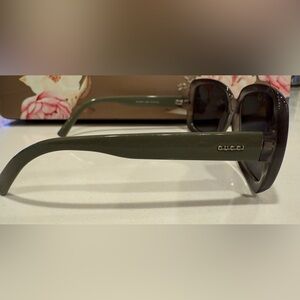 Front frame is a smoky gray and the sides are an army green. It does have a prescription in it so this would be for the frames only and you would put your own prescription in it. In great shape comes with case. Case has a small nick on it as shown in photo. I do not know the RX. Bought to reuse the frame but decided against the frame.