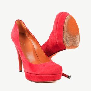 Gucci Raspberry Suede Platform Round-Toe Stiletto Pumps