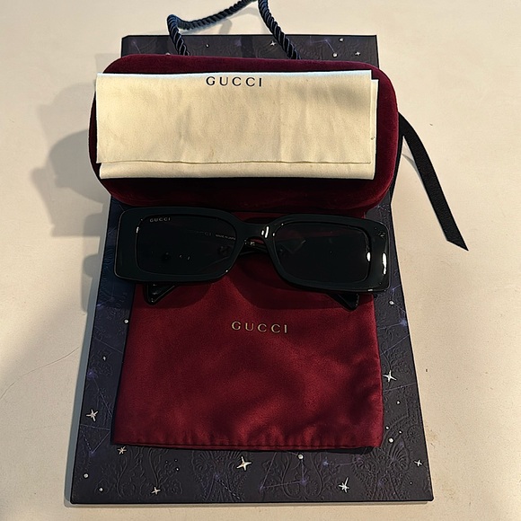 Authentic like brand new condition, barely worn rectangle frame Gucci sunglasses. Comes with case, dust bag, shopping bag and original purchase receipt.