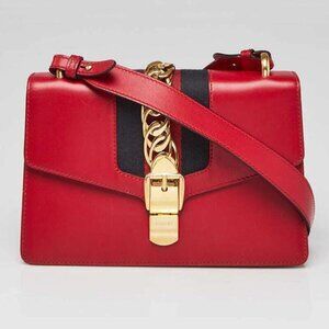 Gucci Red Calfskin Leather Small Sylvie Shoulder Bag