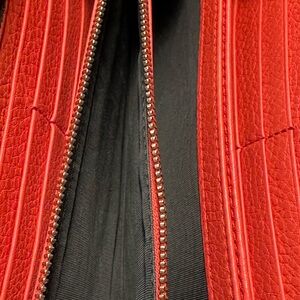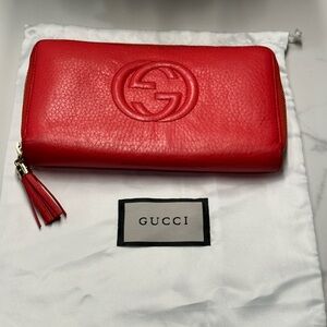 Gucci Red Coral Soho Interlocking GG Leather Zip Around Wallet + Gucci Dust Bag