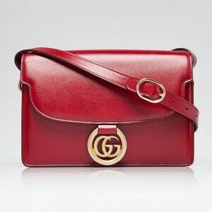 Gucci Red Grained Leather GG Ring Shoulder Bag