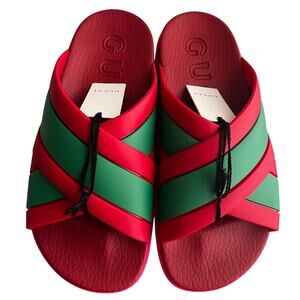 Gucci Red Green Striped Web Accent Rubber Sandals, IT37/US7