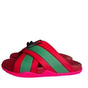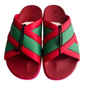 Gucci Red Green Striped Web Accent Rubber Sandals, IT38/US8
