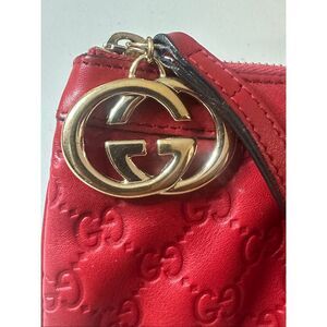 Gucci Red Guccissima Leather Interlocking G Wristlet Pouch Key Pouch