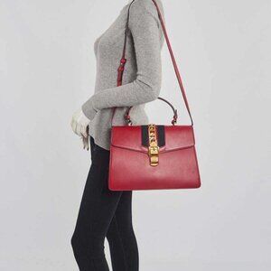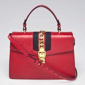 Gucci Red Leather Calfskin Leather Vintage Web Medium Sylvie Shoulder Bag