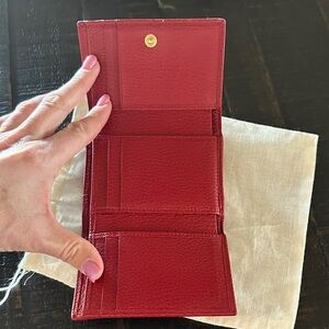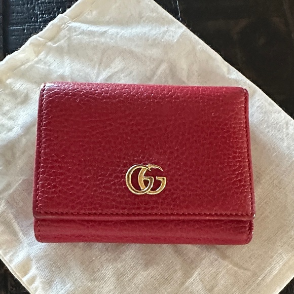 Chic Gucci wallet in vibrant red leather. Features iconic gold GG logo. Compact and stylish design. Pre-loved condition. Normal signs of use. Please see all pictures. Beautiful little Gucci wallet for your collection ❤️