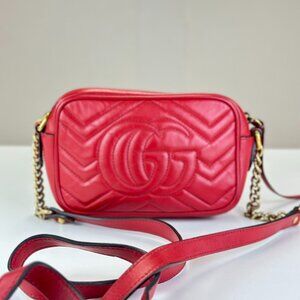 Gucci Red Leather Small Marmont Shoulder Bag Crossbody