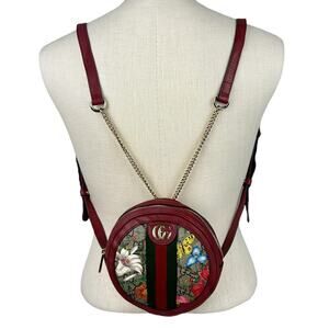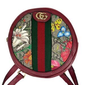 Gucci Red Ophidia Supreme GG Canvas Floral Round Chain Strap Mini Backpack