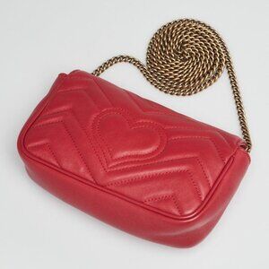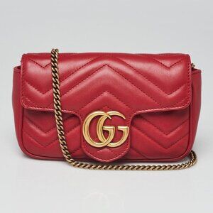 Gucci Red Quilted Leather GG Marmont Matelasse Super Mini Bag