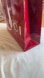Stylish Gucci shopping bag in red. Features white handles and logo. 22.5x17x 8