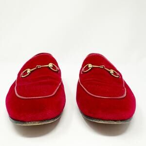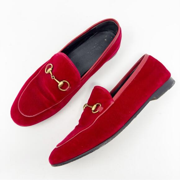 Gucci Red Velvet Horsebit Jordaan Loafers Size 38