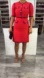 This timeless luxury dress from Gucci is near perfect! Features the classic GG logo on the front buttons, red and navy blue color theme, and elegant shape. Lined, back zipper closure.