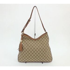 Chic shoulder bag with playful cherry print. Features bold red accents and classic brown tones. Perfect for a stylish statement. No box and no dust bag