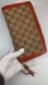 Elegant Gucci wallet with signature logo design. Red trim adds a bold touch. Ideal for daily essentials.