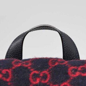 The exterior wool is clean and beautiful with light rubbing and some pilling. The leather trim is clean with light rubbing. The interior lining is clean with no wear. Overall the backpack remains in great condition.