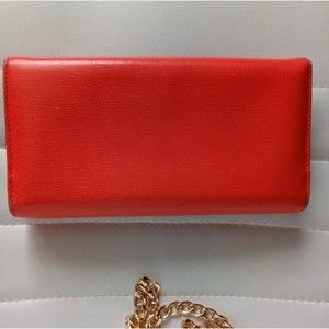 Gucci Red/Orange Leather Horse bit long wallet Authentic w/chain & felt insert.