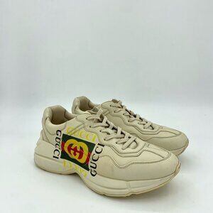 Gucci Rhyton Ivory Leather Sneakers With Double G Logo Print