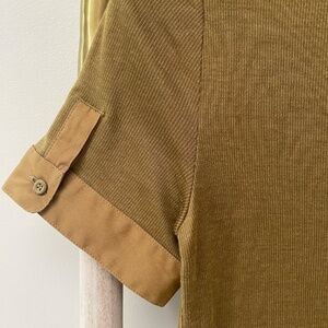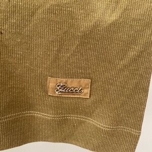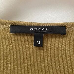 Gucci Ribbed Short Sleeves Silk Cotton Khaki Green Top Italy Size M