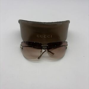 Elevate your everyday style with these stunning Gucci GG2782/S Rimless Shield Sunglasses, a must-have addition to your collection of premium Accessories. These iconic shades offer a sophisticated, contemporary aesthetic with their striking rimless shield design, providing both ample coverage and undeniable chic appeal. Crafted with Gucci's renowned attention to detail, they feature subtle branding that exudes luxury without overtness. Experience the perfect blend of high-fashion and eye protection, making a bold statement wherever you go.