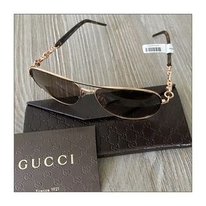Gucci Rose Gold Marina Chain Aviators & Crystals