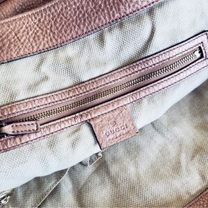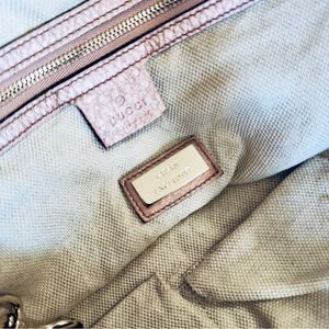 This gorgeous pink Gucci Pebbled Leather Soho Shoulder Bag features the iconic bold GG logo embroidered on the front. The bag is made of supple pink metallic pebbled leather with goldtone hardware and a leather tassel.