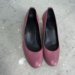 Check out the pictures. These look great I have recently had them professionally redone because they had wear on the toes and the heels. He did a beautiful job. Super comfortable heel height is 2.5 inches.