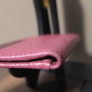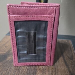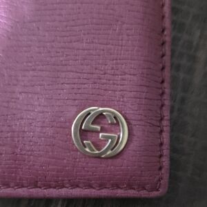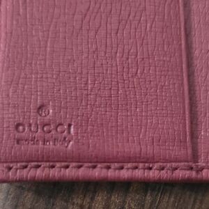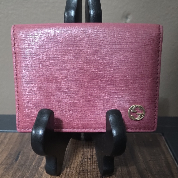 Really Good pre-owned condition Authentic Gucci Rosso Ancora red and pink leather bi-fold card holder. Lined card slots with fabric