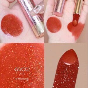 This limited edition Gucci lipstick offers a luxurious glitter finish, perfect for those who appreciate high-end cosmetics. The elegant packaging reflects the opulence of the product within.