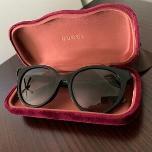 Crafted from acetate, these round sunglasses are characterized by a shiny black front and Web striped enamel temples, while the Interlocking G appears as a logo detail. Each season, House codes and symbols are reimagined and reintroduced in creative new ways.