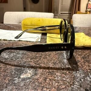 The Gucci round-frame sunglasses are crafted from acetate. These sunglasses feature round frames, tinted lenses, and branding at the arm, and provide 100% UV protection.