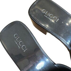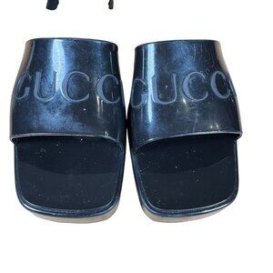 Gucci Rubber Logo Sandals Black PVC Glossy Mule Platform Slide Size 41