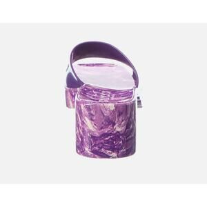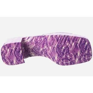 Elevate your summer style with the Gucci Rubber Platform Sandal. Made in Italy, these vibrant purple sandals feature the iconic Gucci logo lettering on the raised rubber platform. The comfortable smooth insole and man-made sole make them perfect for all-day wear. Please note that this item typically runs small, so we recommend sizing up. With a 2 inch heel and luxurious design, these Gucci sandals are the perfect addition to your warm-weather wardrobe. Authenticity is guaranteed with our 100% genuine products sourced from trusted independent suppliers. Italian luxury redefined