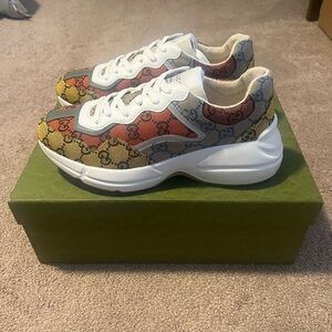 Released on May 25, 2021, for $790, the Gucci Rython GG Multicolor White quickly became a sought-after item among those who cherish luxury sneakers with a story. Its launch is remembered as a moment when Gucci once again redefined the boundaries of high fashion, blending traditional elements with a fresh, colorful twist.
