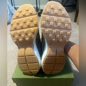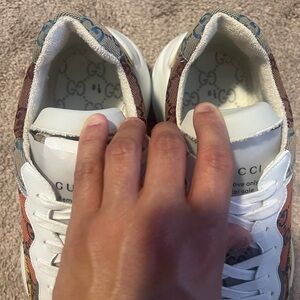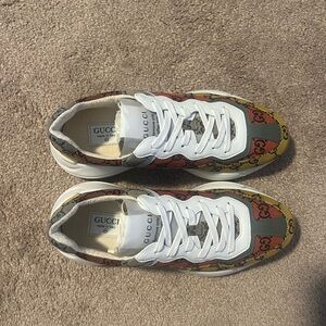 Each element of the Rython GG Multicolor White, from the sturdy construction to the intricate GG canvas, is a testament to Gucci's mastery over materials and design. The sneaker combines the heft of its silhouette with the lightness of its aesthetic, offering a unique juxtaposition that's rare in luxury footwear. It's a bold statement of individuality, wrapped in the comfort and quality synonymous with Gucci.
