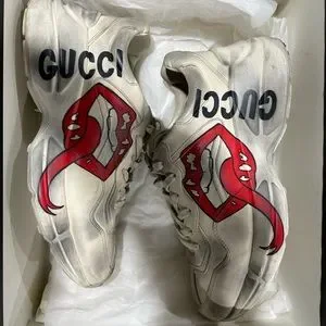 Gently used Gucci Rython kiss sneakers. 100% Authentic with shown with Box. Getting rid of things in my closet due to financial hardship.