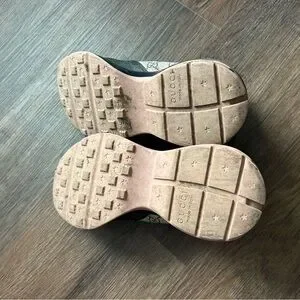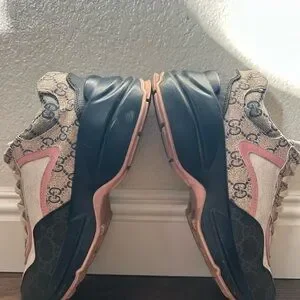 Chic Gucci sneakers with beige and pink canvas. Iconic logo pattern. These need TLC, definitely many imperfections including a tear in the top left heel as pictured. They are size 41.5 or a women’s 9.5 US. Open to offers.