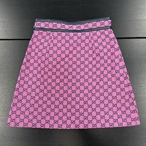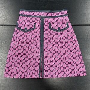 Gucci SS21 Pink GG Canvas Skirt with Leather Trim - size 40