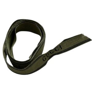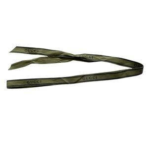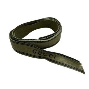 Luxurious sage green ribbon with Gucci logo. Ideal for stylish accents. Gucci ribbons can be used as DIY projects, hair accessories, bracelets, or chokers.