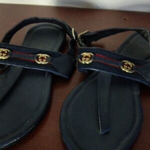 Gucci flip flops Stylish navy sandals featuring red and gold accents. Perfect for casual wear.