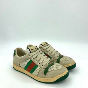 Gucci Screener Sneakers 36.5 Butter Green Canvas & Leather With GG Enamel Design