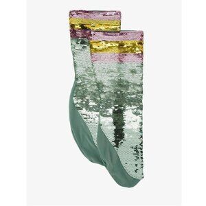 These vibrant Gucci socks feature a stunning green color and are adorned with shimmering sequins, adding a touch of glamour to any outfit.