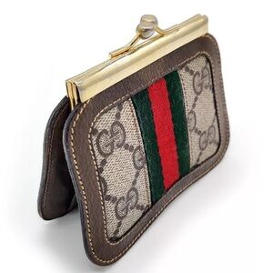Gucci Sherry Line Coin Purse PVC Leather Brown Authentic Vintage